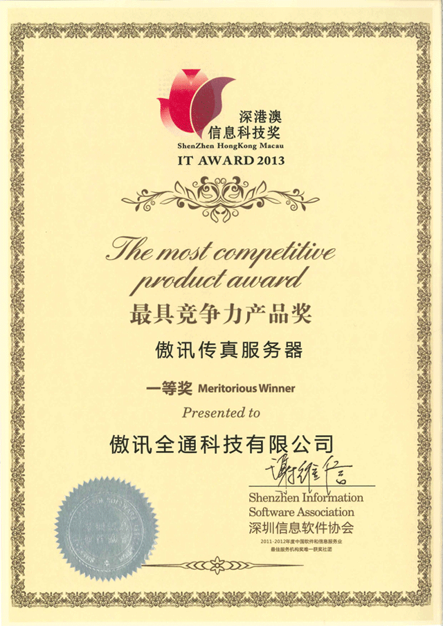 深港澳信息科技奖2013最具竞争力产品奖一等奖