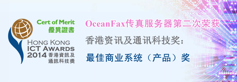 香港-2014年4月17日-传真服务器领导厂商傲讯全通科技有限公司近日宣布,其旗舰产品OceanFax传真服务器子系列FoIP传真服务器荣获2014香港资讯及通讯科技奖:最佳商业系统(产品)优异证书。这是该产品第二次荣获此项荣誉。两次荣获此项荣誉,彰显了傲讯全通在传真服务器行业不容质疑的尊荣地位。